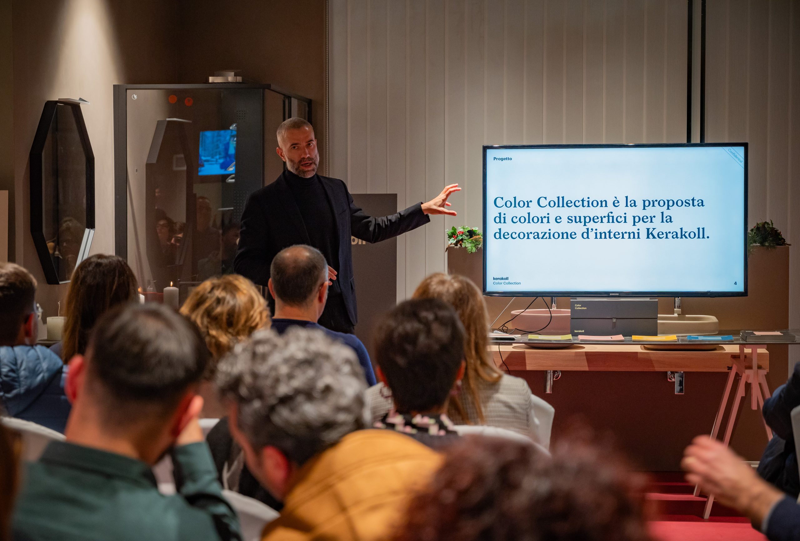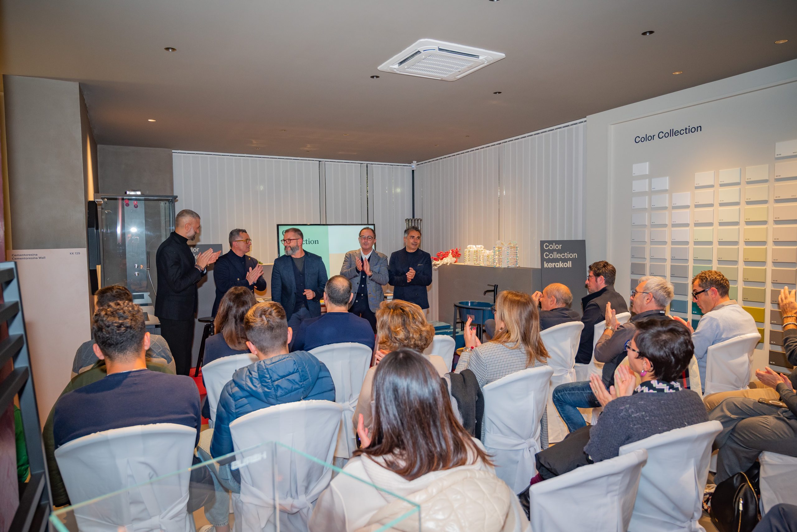 A guidare i partecipanti alla scoperta del mondo del colore è stato Giovanni Piretti, Product Manager di Kerakoll e relatore principale dell’evento, che ha illustrato le potenzialità di questa innovativa gamma. Al suo fianco, il Sales Area Manager Sicilia, Salvatore Balli, e gli agenti di zona Giovanni Pipitone e Francesco Ricupero hanno condiviso dettagli tecnici ed esperienze pratiche, dimostrando come il colore possa diventare uno strumento di progettazione capace di trasformare gli spazi.