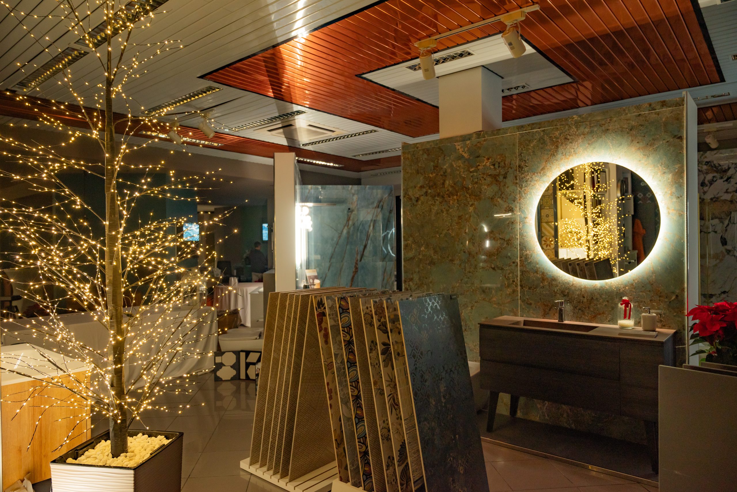 Un momento centrale della serata è stata l’inaugurazione del nuovo showroom, uno spazio moderno e accogliente progettato per ispirare professionisti e clienti alla ricerca di soluzioni nel mondo delle ceramiche e dei materiali decorativi.